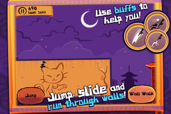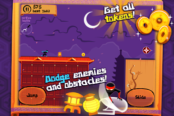When the night falls across the land of Japan, rooftops become the path of mysterious warriors -- the ninjas! Beat challenging obstacles and merciless enemies while running, climbing walls and sliding to trick death. Collect tokens, use special buffs and see how far you can go!